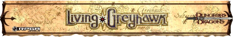 DUNGEONS & DRAGONS, D&D, GREYHAWK, and RPGA are registered trademarks of Wizards of the Coast, Inc. LIVING GREYHAWK is a trademark of Wizards of the Coast, Inc. All D&D characters, character names, and the distinctive likenesses thereof are trademarks owned by Wizards of the Coast, Inc. This web site contains no Open Game Content. Content of this web site is not for redistribution online. This is an official LIVING GREYHAWK region website authorized by the RPGA Network. This web site is not endorsed by Wizards of the Coast, Inc. Use of the name of any product without mention of trademark status should not be taken as a challenge to such status.